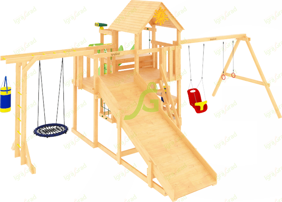 Обращаем Ваше внимание, что цвет установленной детской площадки может отличаться от представленных изображений на сайте.