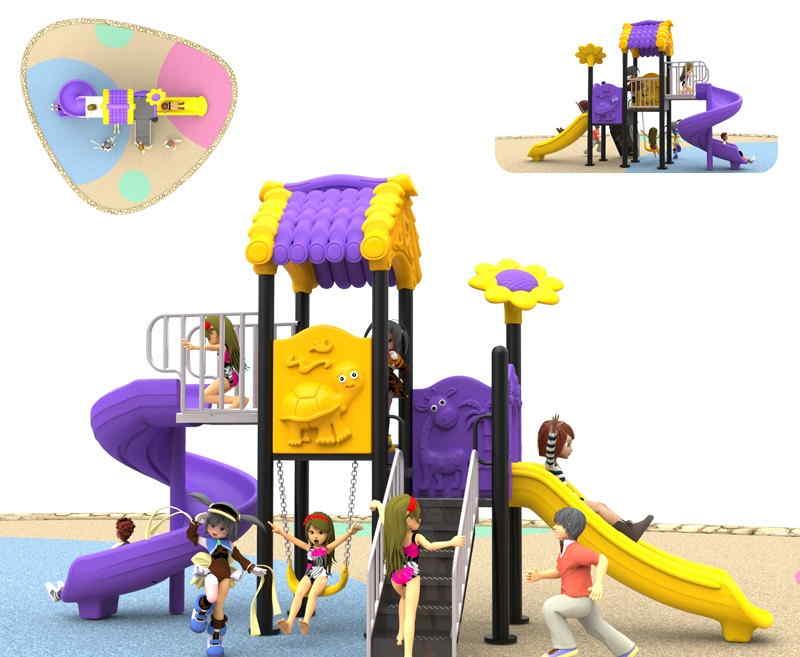 В комплектацию детской площадки входят: домик, горка спираль, горка скат, три платформы, лестница.