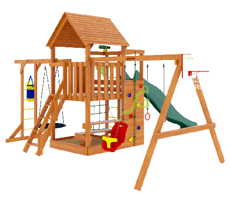 Обращаем Ваше внимание, что цвет установленной детской площадки может отличаться от представленных изображений на сайте. Специфика окраски нетоксичными пропитками допускает отклонения в цветовой гамме отгружаемых изделий вследствие различного цвета натурального природного сырья и естественных компонентов, используемых для производства площадок.